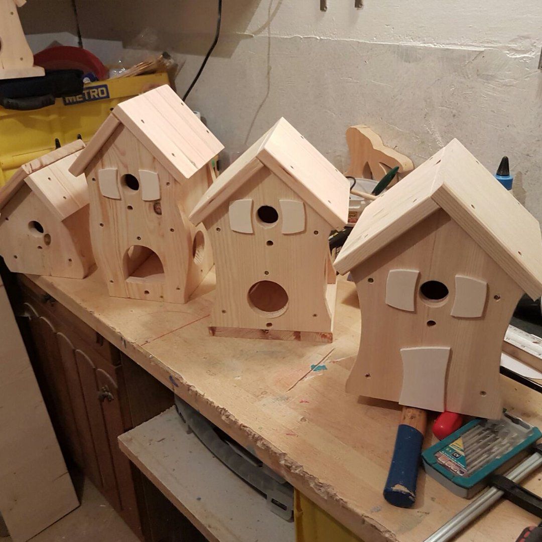Ich biete an meinem Stand diverse selbstgenähte Schnullerbänder und handgearbeitete Vogelhäuser an, die kreativ gestaltet sind. Jedes Vogelhaus ist ein Unikat.