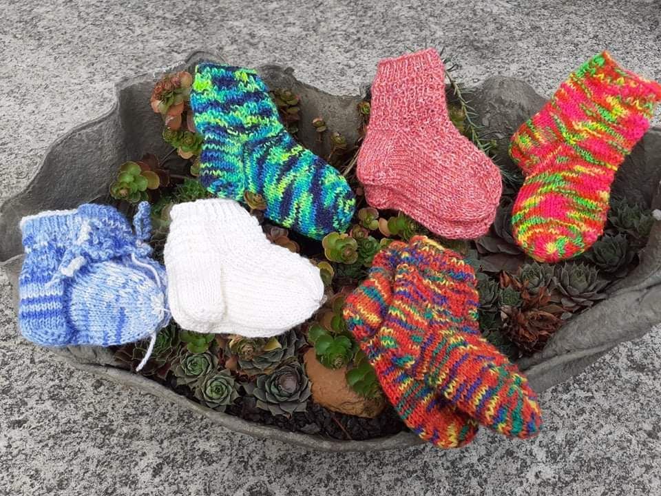 Bei mir dreht sich alles über Wolle. Es gibt handgestrickte Socken, Mützen, Schals, Tücher, Stirnbänder und Babyartikel.