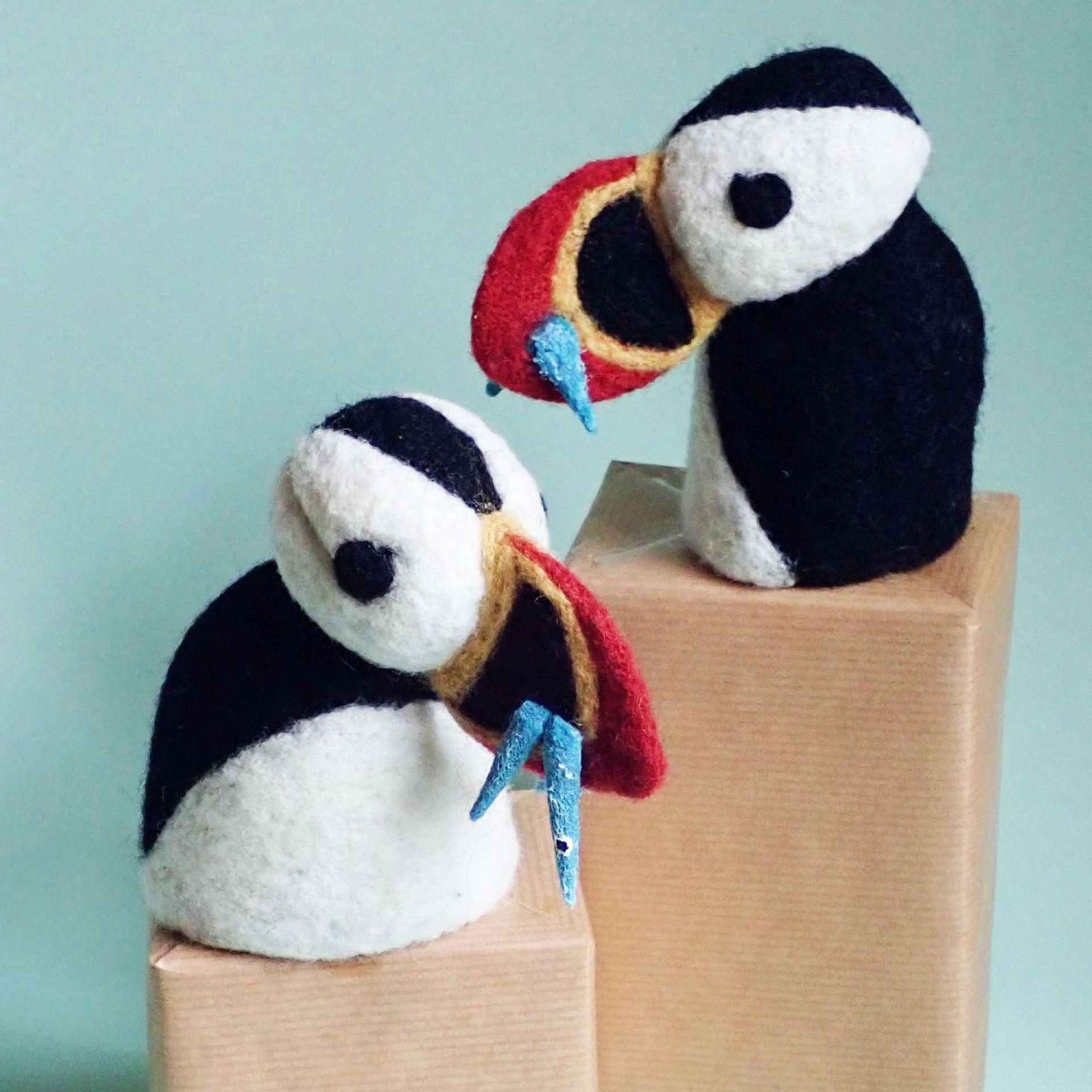 4. Felted egg warmers in the shape of puffins and blue whales.