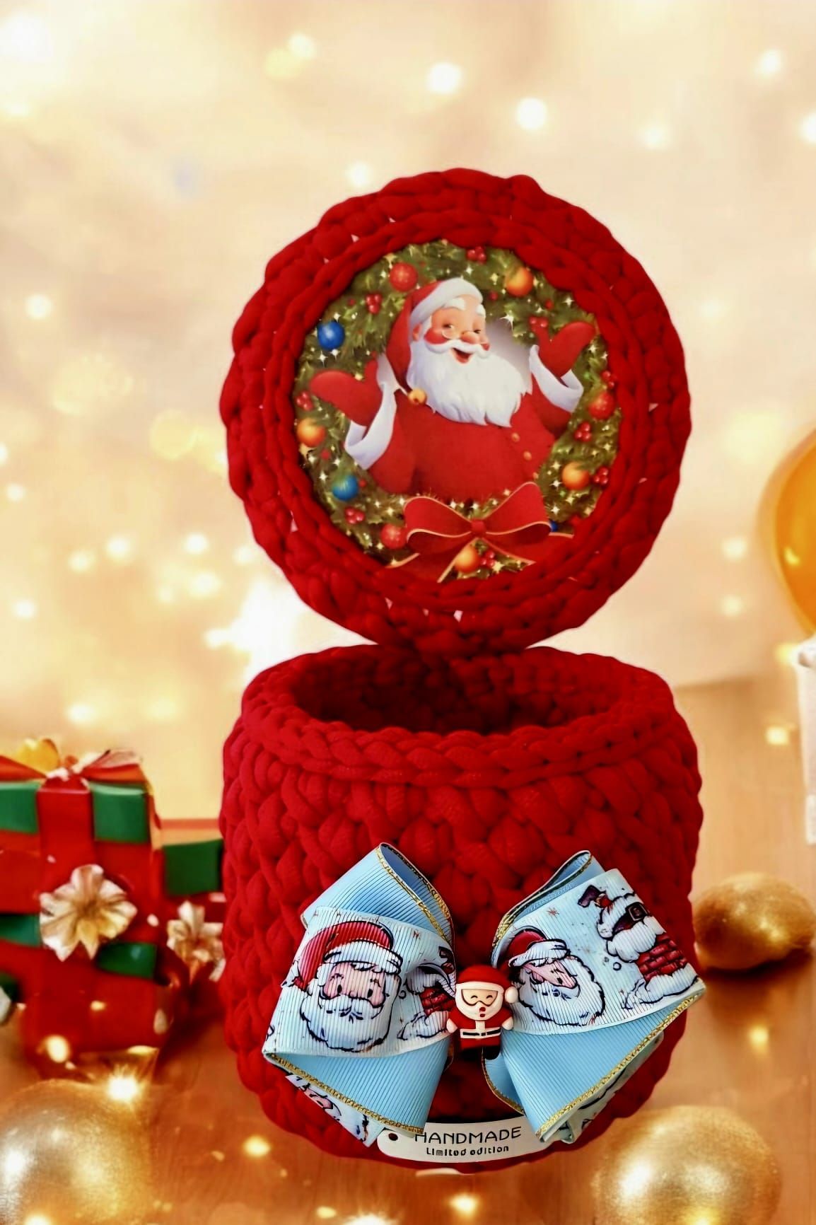 I offer crocheted baskets for adults and children, with or without a wooden bottom and lid.